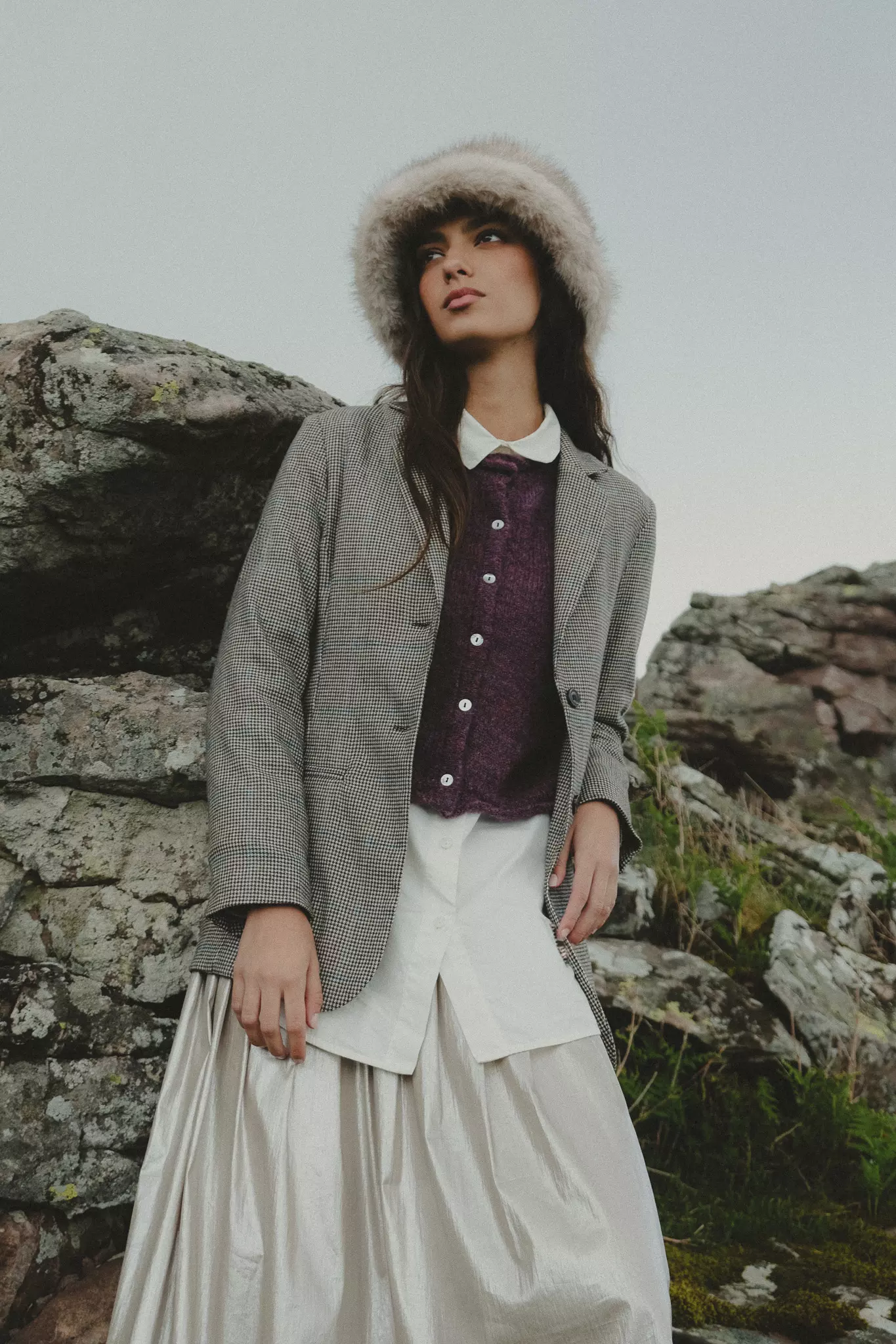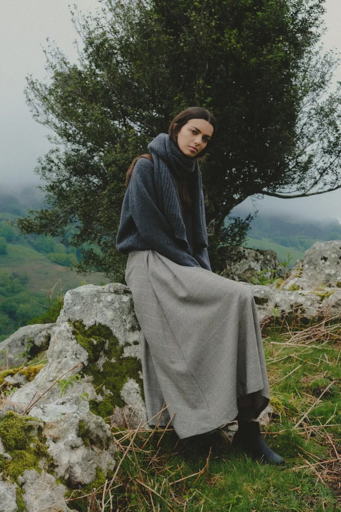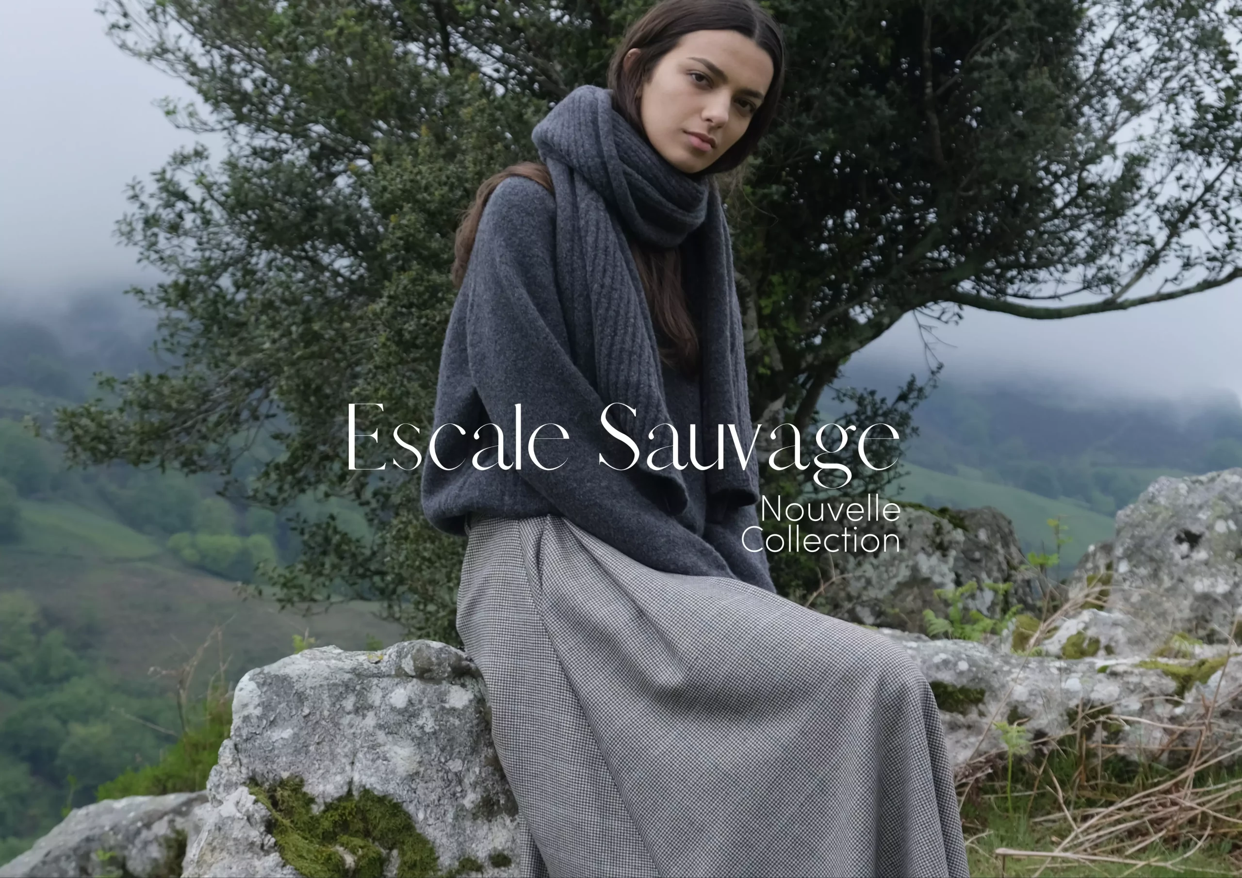 Une échappée dans les montagnes, les nuages, le vent. Ici, tout semble plus lent. Une collection pour les instants suspendus, avec des volumes amples, des textures profondes, des matières choisies — maille rustique, tweed lainages. On s’enveloppe, on s’ancre. Une élégance naturelle, une allure brute, presque instinctive. Pour marcher longtemps et rester au chaud.
