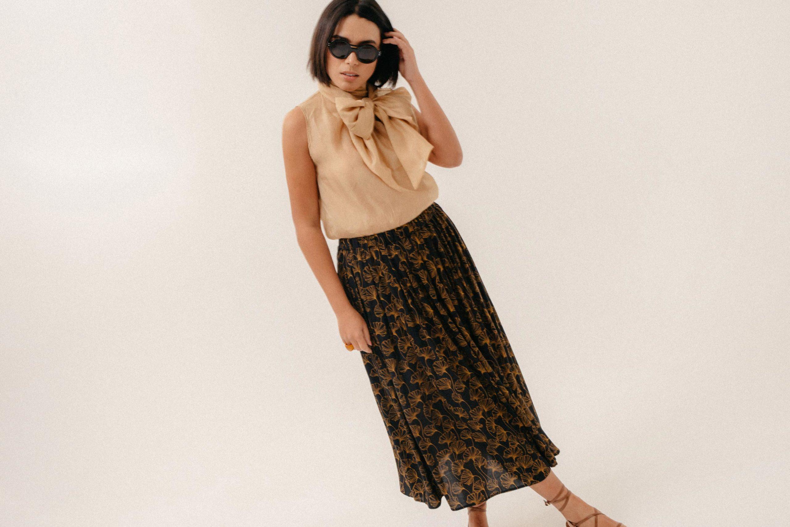 A timeless skirt, easy to combine with the Angie, Adèle top or a white tee for a fresh, casual style made from natural viscose fibres. This easy-care plant fibre is soft and light to the touch. The exclusive print developed by lilith makes this piece unique.
