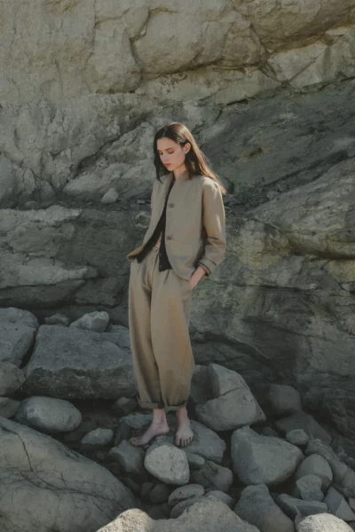 Its intricate details - darts and Italian pockets on the front, patch pockets on the back, subtly placed seams - will add character to your looks.
