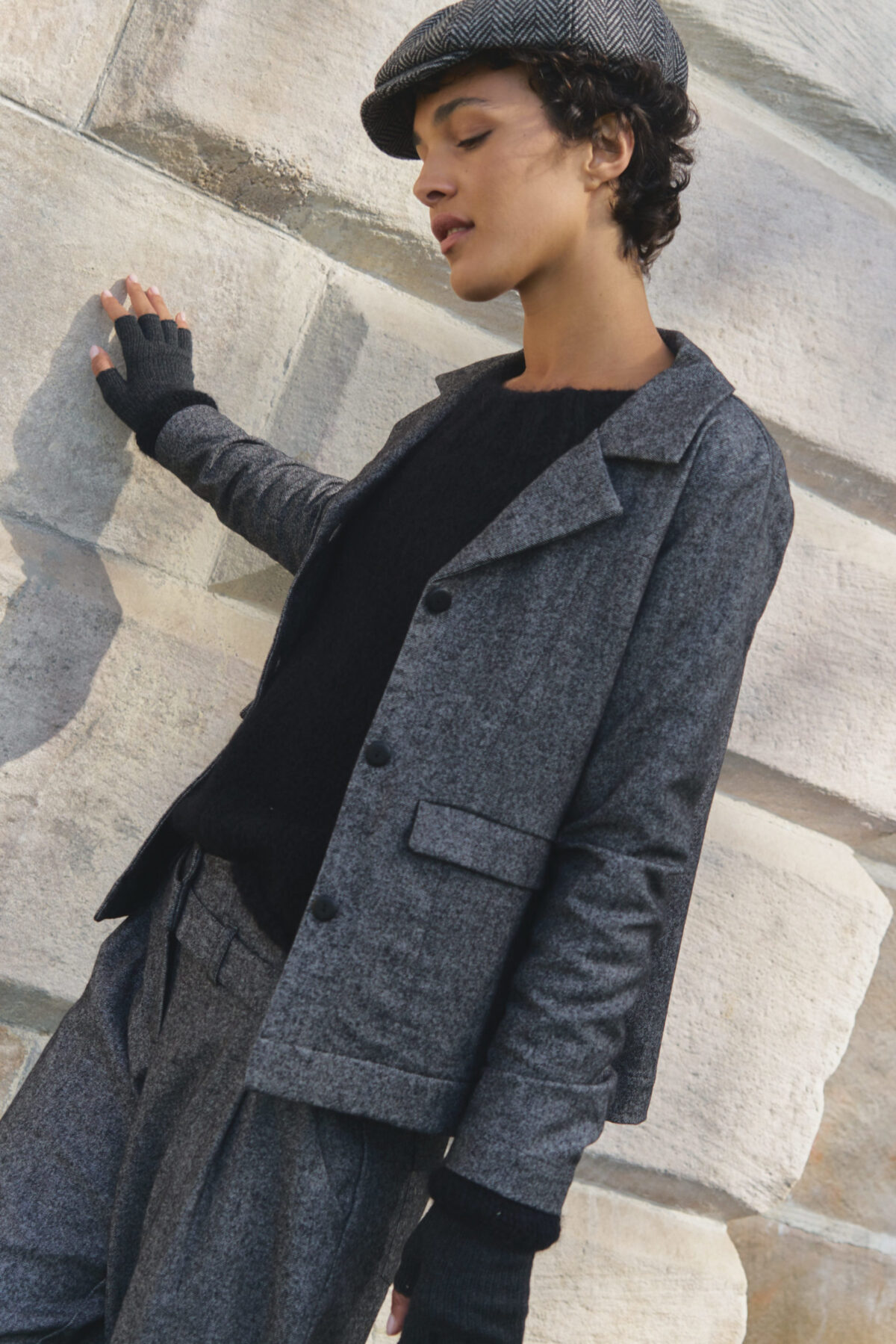 HERMINE, short jacket in mottled wool with a slim fit, 2 flap pockets and tailored collar.