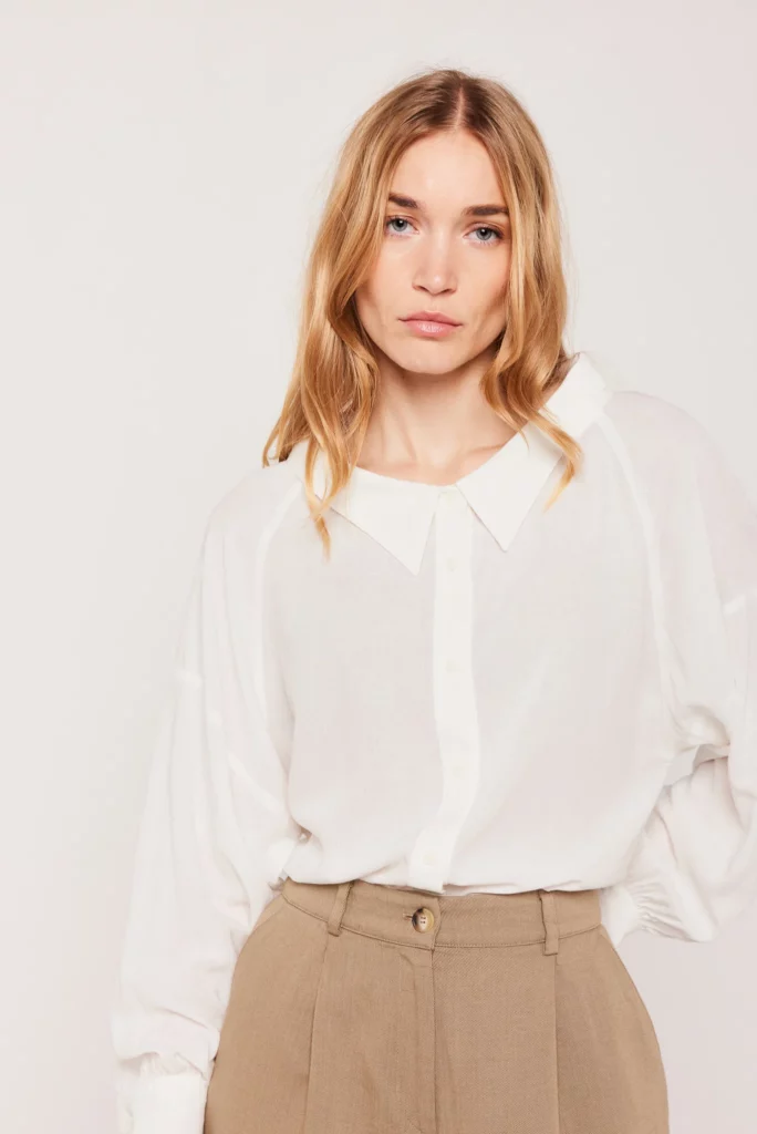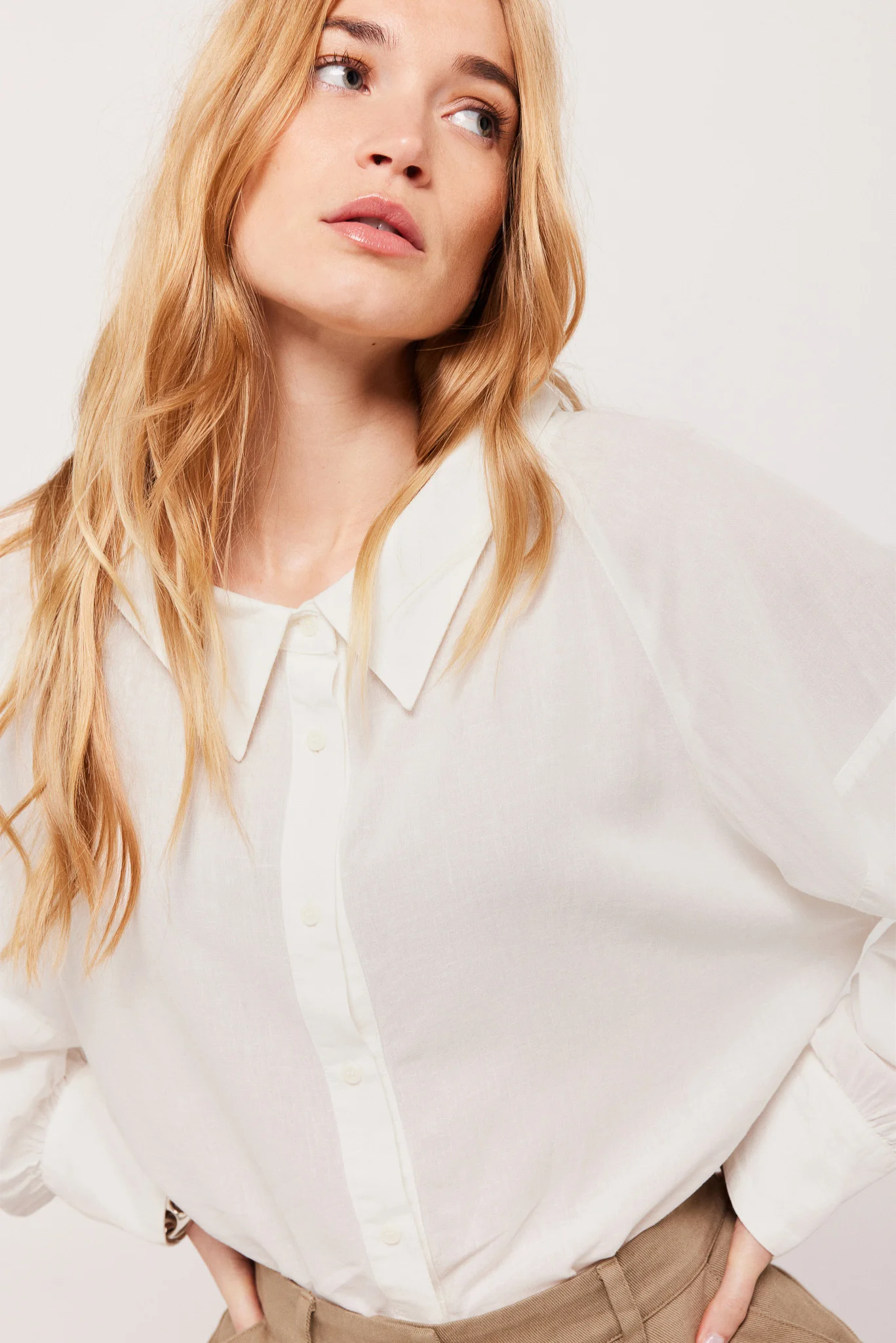 Chemise en lin et viscose, légère et fluide sur la peau.