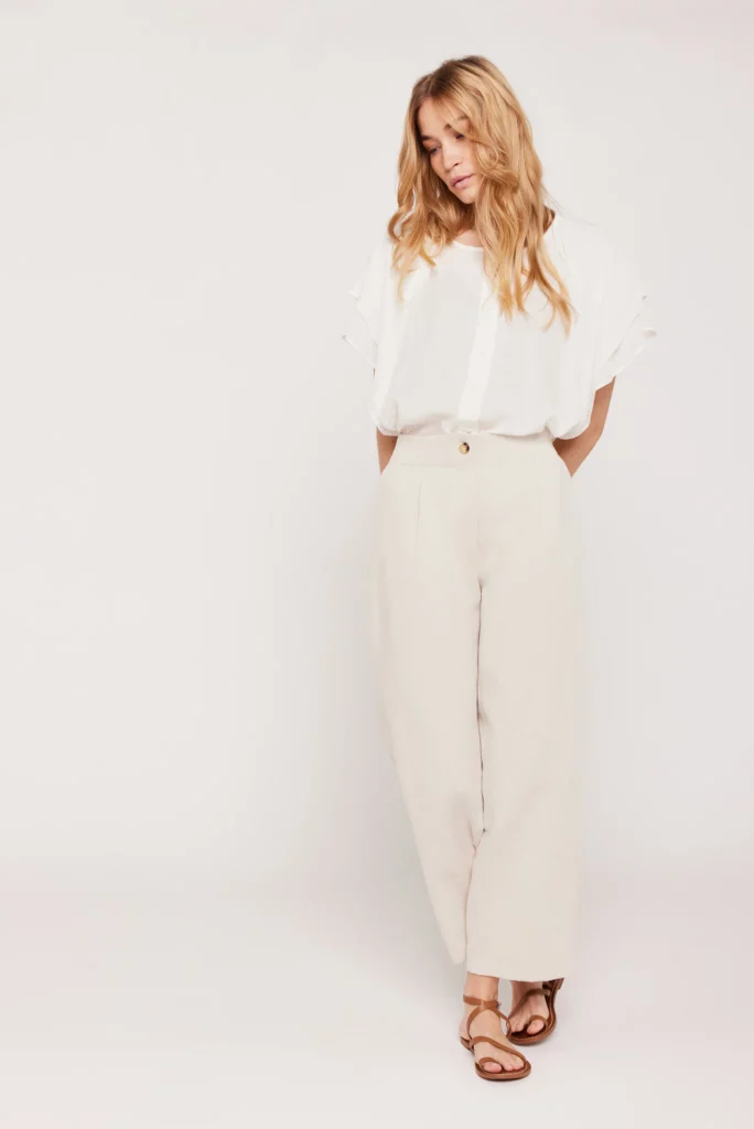 Pantalon en coton et lin, des matières naturelles pour un look frais.
