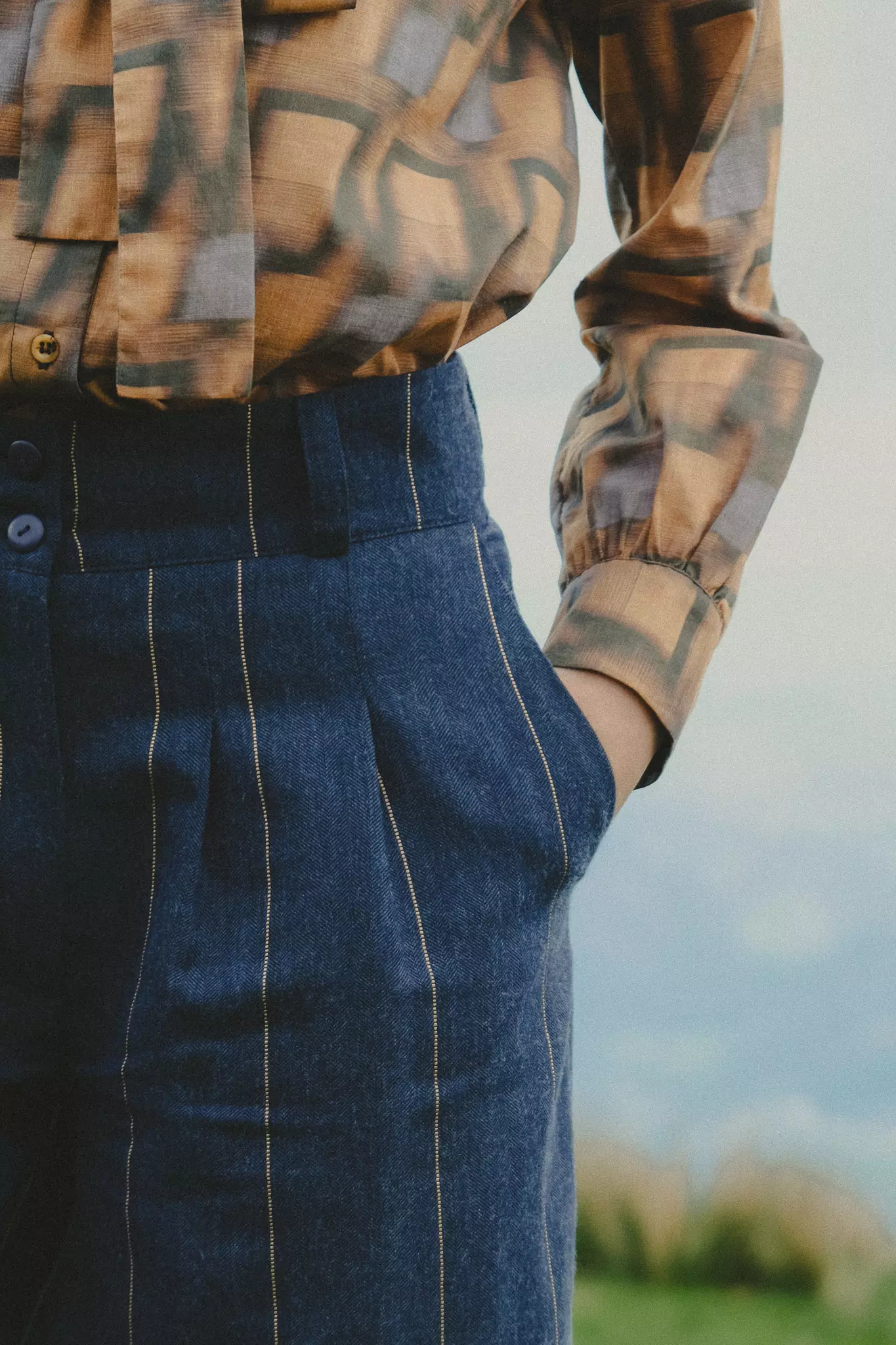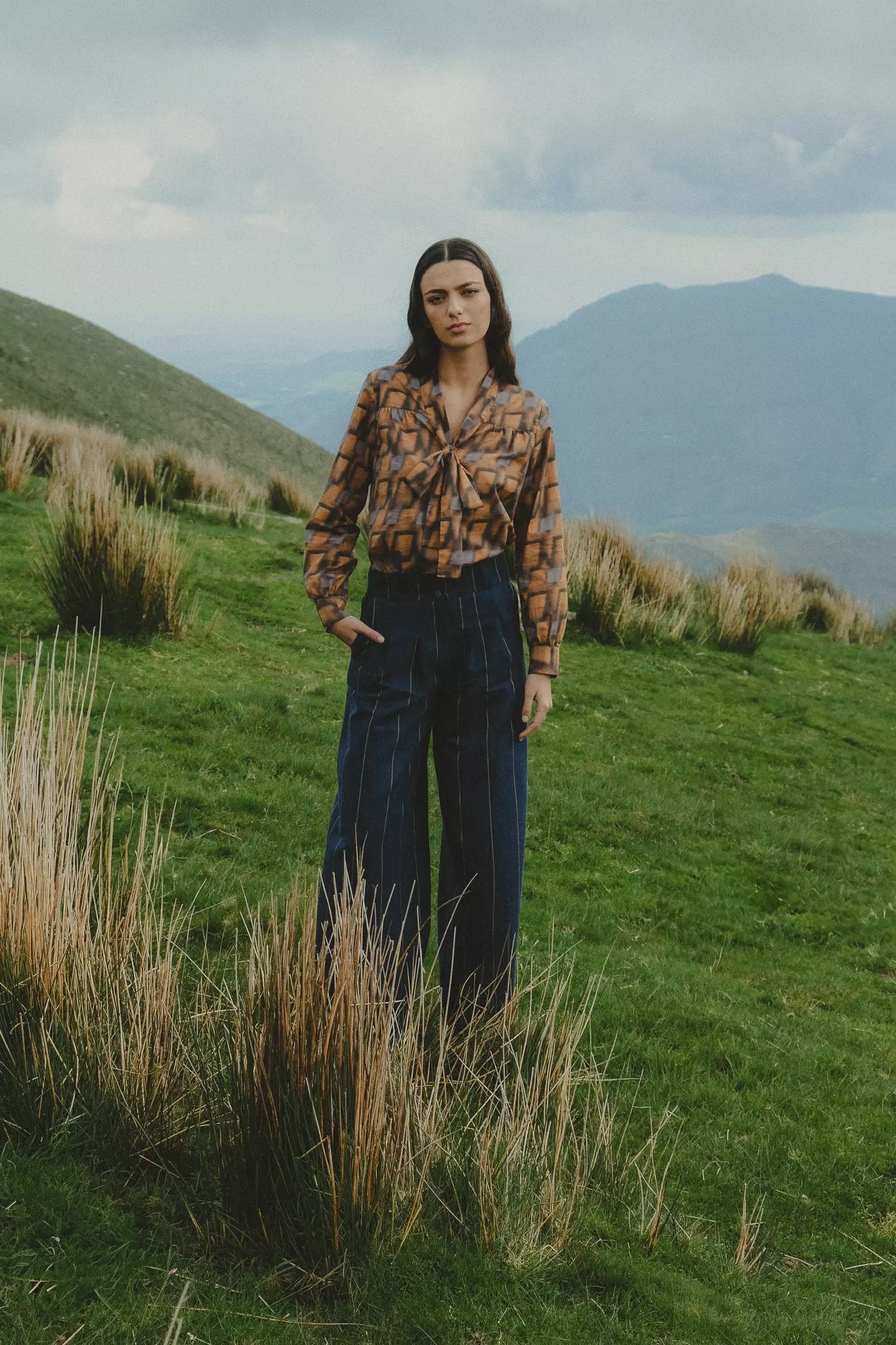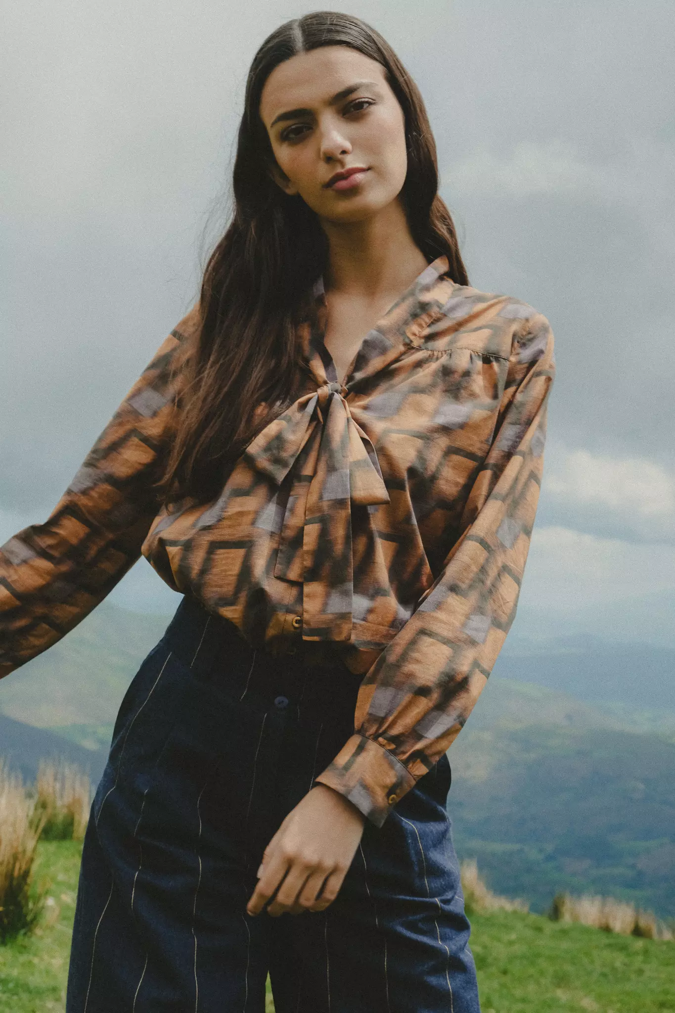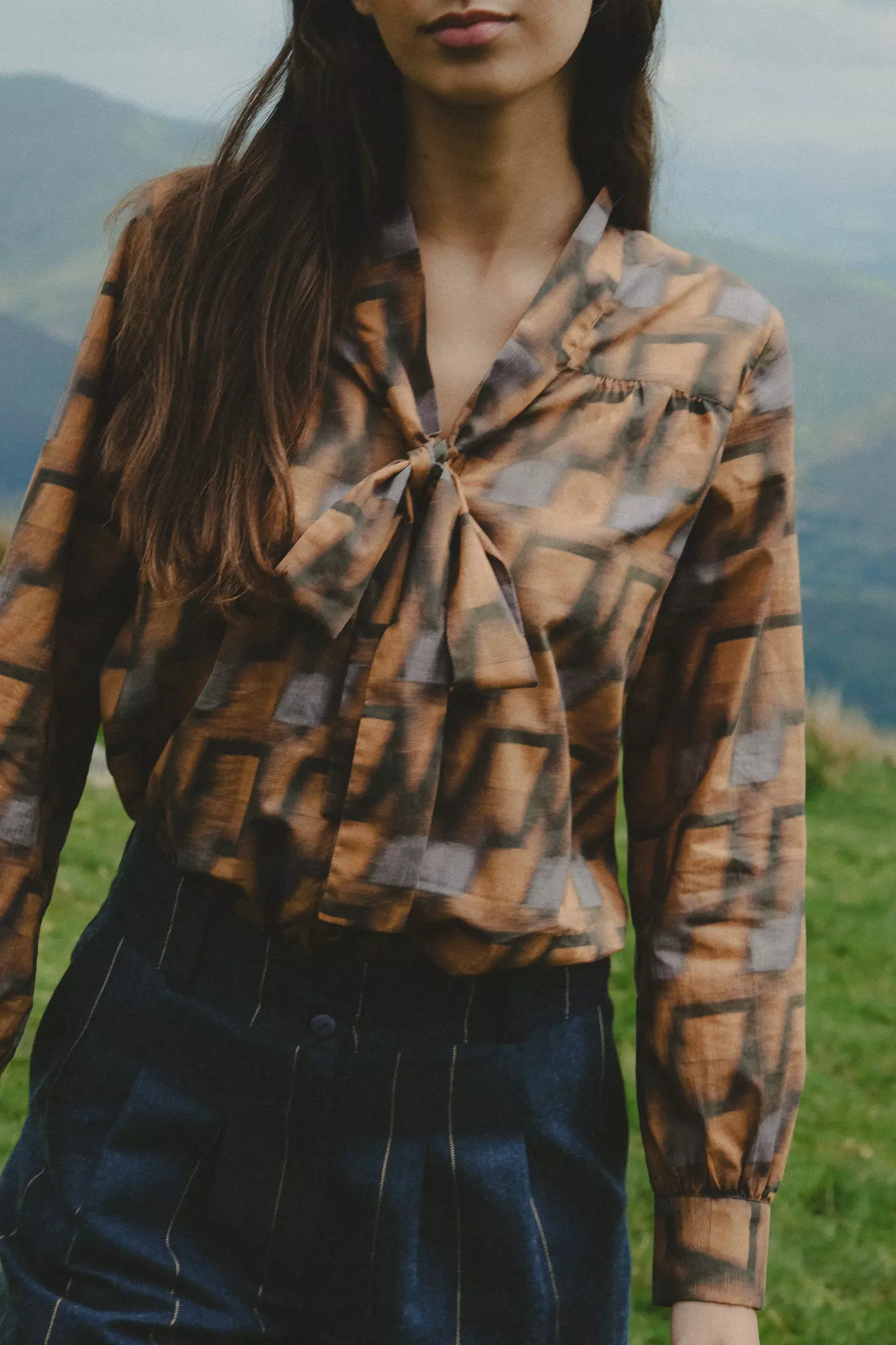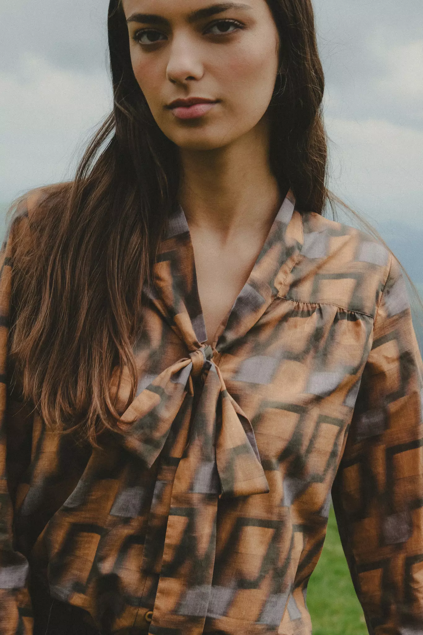 Une pièce graphique aux couleurs chaudes. Cette blouse en coton imprimée se démarque avec son joli col lavallière.