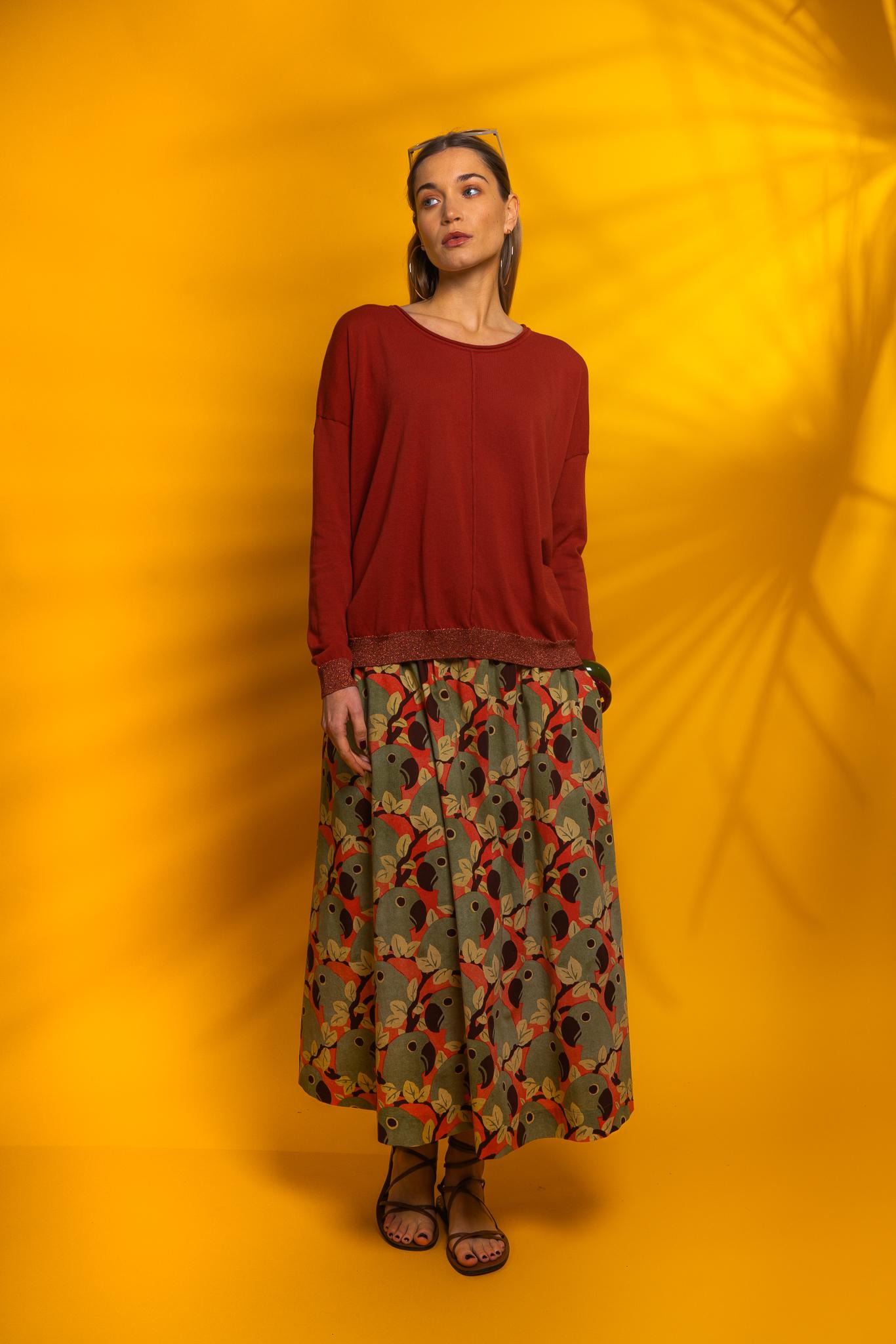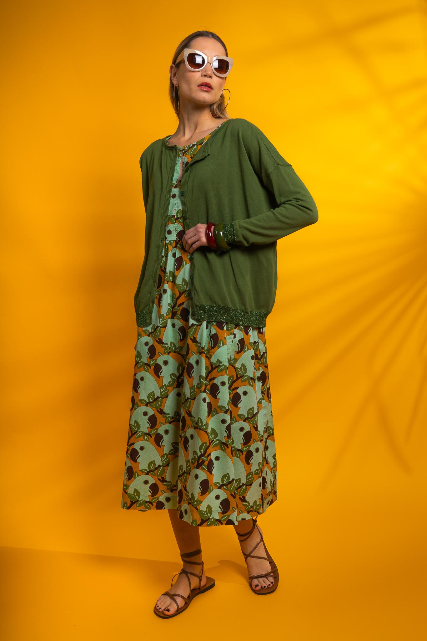 Un pull/gilet confortable, doux et fin, à porter devant dos par dessus la robe Clea ou avec la jupe Caroline.