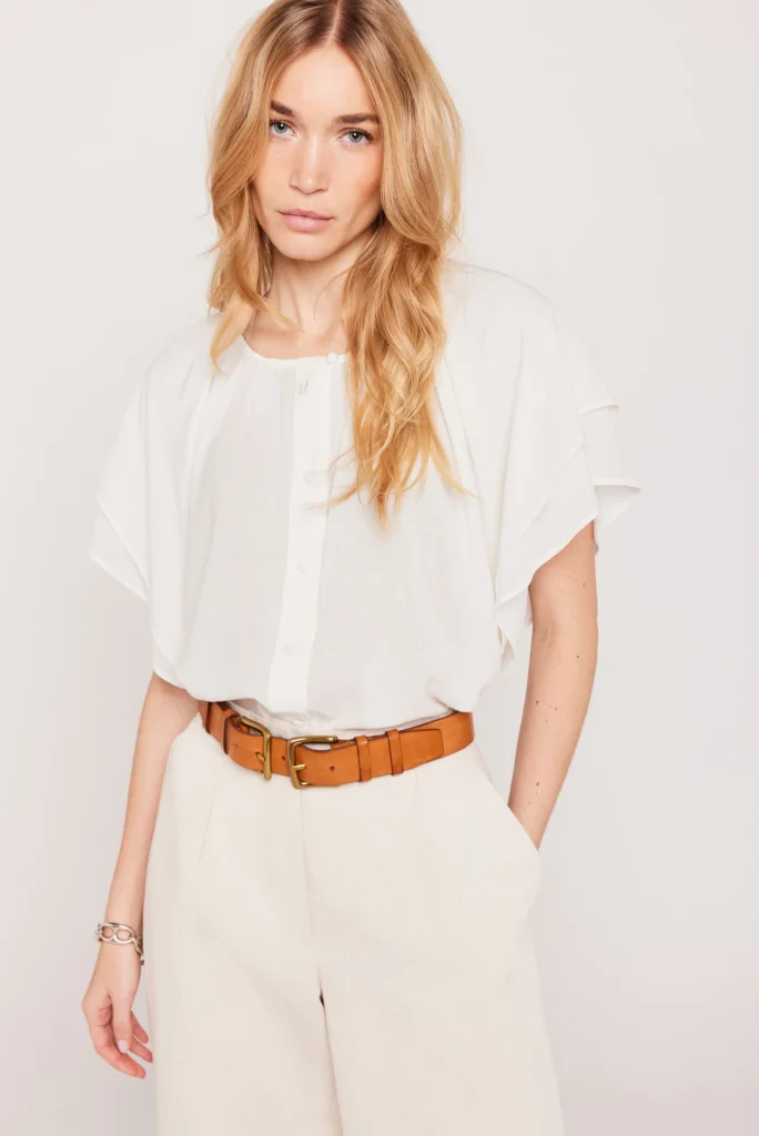 Les manches volantées créent un mouvement fluide qui accompagnera vos gestes.