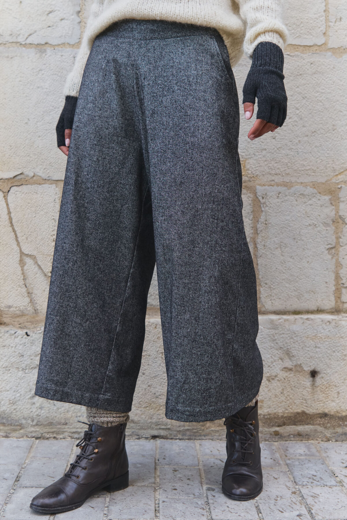 Il est souple et confortable, confectionné dans un tissu chiné, mélange de laine, coton et élasthanne.