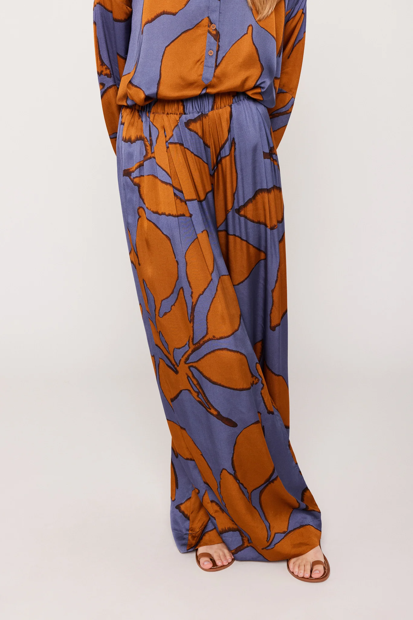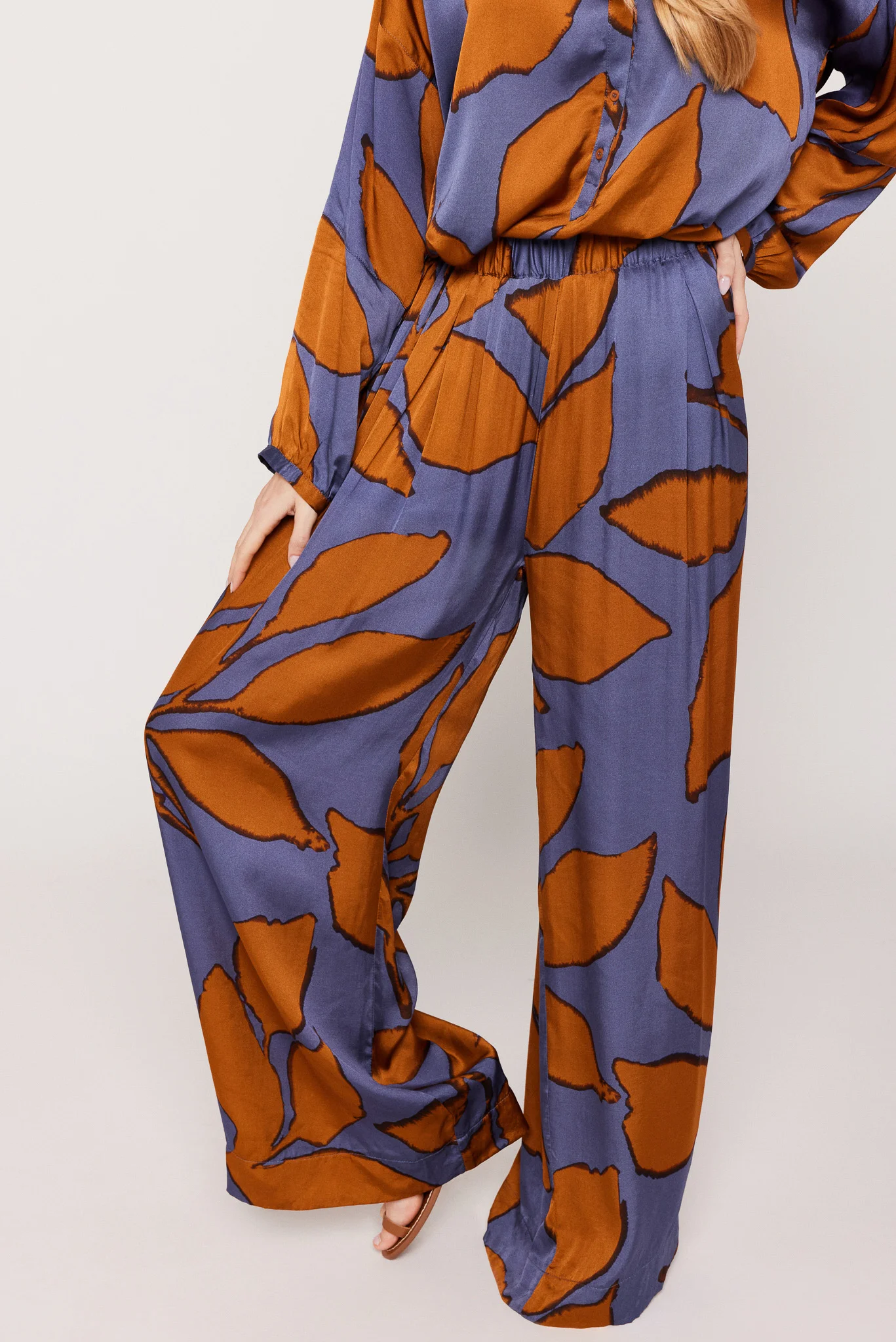 Pantalon en viscose fluide, à l’imprimé graphique et vibrant.