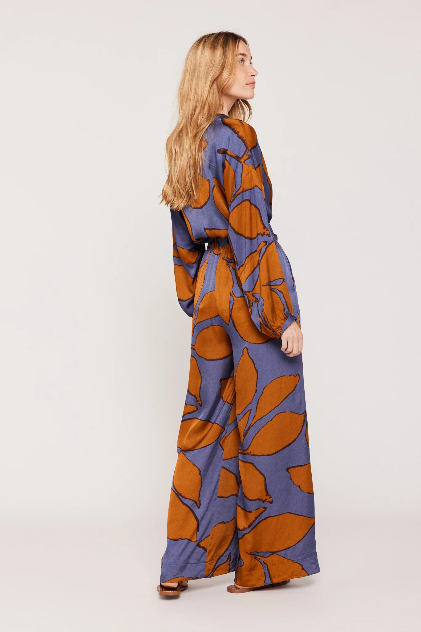 La jambe large accompagne le mouvement avec souplesse, tandis que les plis discrets assurent un tombé impeccable.
