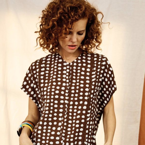 - Fluid top with pleats